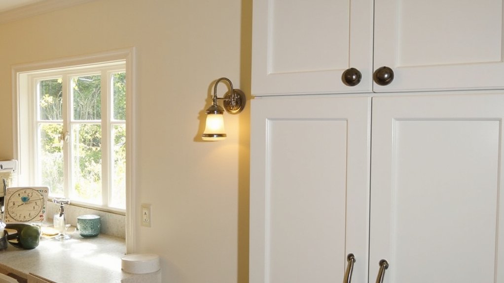 Brighten your kitchen with the subtle charm of soft wall sconces, a perfect way to add warmth. These fixtures create a cozy glow, enhancing your space without overpowering it. Mount them strategically for best results.