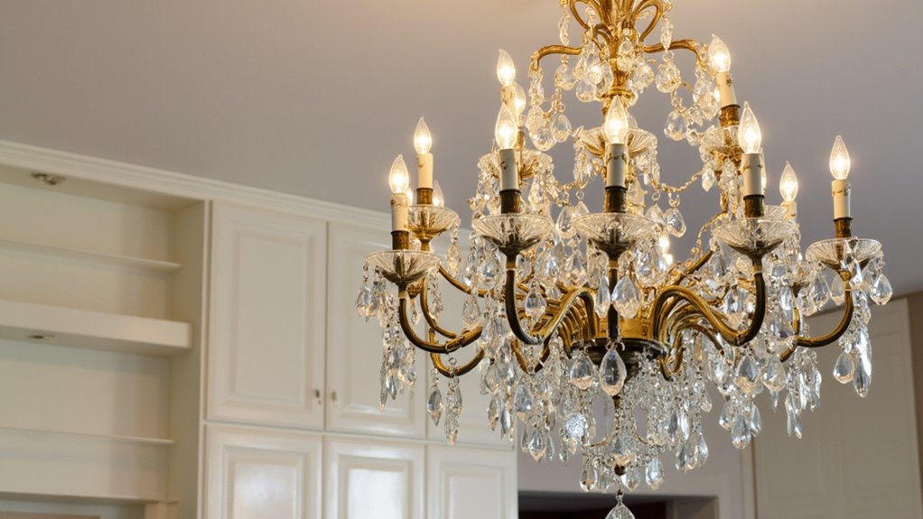 If you’re craving a touch of timeless elegance, vintage chandelier lighting can transform your kitchen into a stunning centerpiece. Hang one over your island or dining nook for a warm, inviting glow with a 40-60 watt bulb.