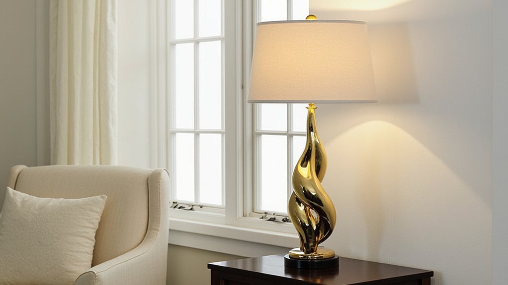As you explore more lighting options, let’s immerse ourselves in artistic table lamps to brighten your living room with style. These lamps aren’t just functional; they’re statement pieces that elevate your space. Choose ones sized around 24-30 inches tall for ideal side table pairing.