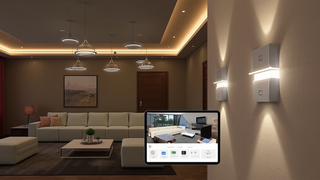 How can you make your living room lighting both modern and effortless? Immerse yourself in smart lighting controls for a game-changing setup. You’ll manage brightness and color with a tap on your phone or a quick voice command.