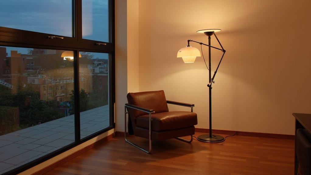 While industrial spotlight fixtures deliver a striking look, let’s explore solar-powered window lights for a sustainable and stylish touch to your living room. You’ll love how these lights harness sunlight, saving energy with zero electric bills.
