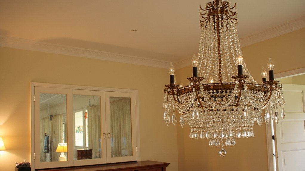 Ready to shift from tech-savvy solutions to timeless style in your living room? Let’s explore vintage chandelier elegance. A stunning chandelier creates a focal point, blending classic charm with sophistication. Hang it 30-36 inches above your coffee table for ideal lighting, taking about 2 hours to install securely.