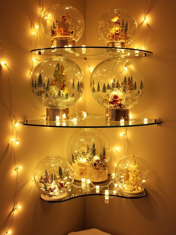 Snowglobes create enchanting winter displays when thoughtfully arranged on shelves. By varying sizes and themes while maintaining proper spacing, these magical decorative pieces transform bedroom decor into a wonderland of miniature scenes.