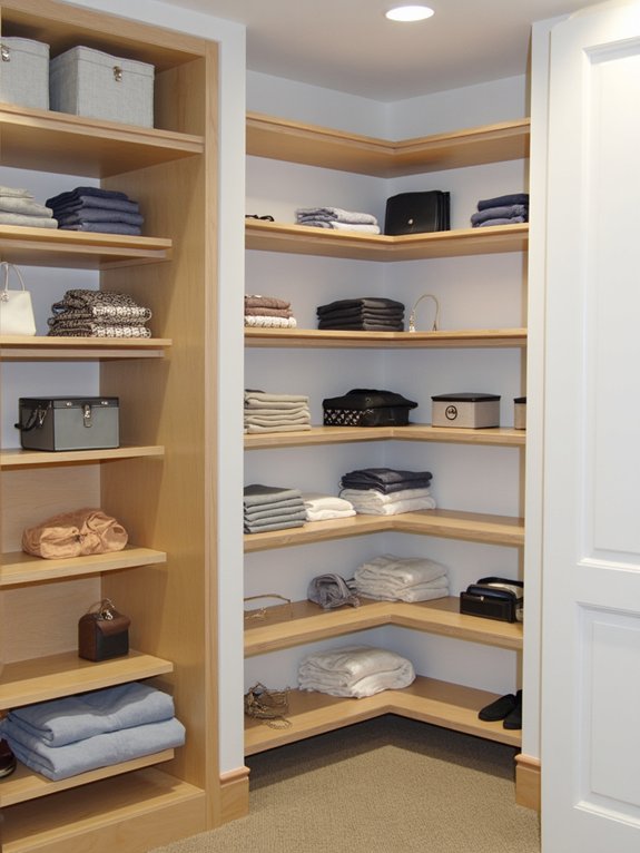 Custom corner shelf units transform unused corner spaces into practical storage areas by utilizing L-shaped designs and adjustable configurations. These units maximize traditionally wasted angles in closets through personalized shelf layouts that fit precisely into corners.