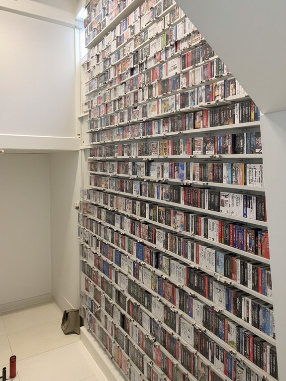 A stairway DVD gallery rail system offers an innovative storage solution by utilizing unused wall space along your stairs. By installing a metal rail system parallel to the staircase, you can transform this area into an organized display for your DVD collection.