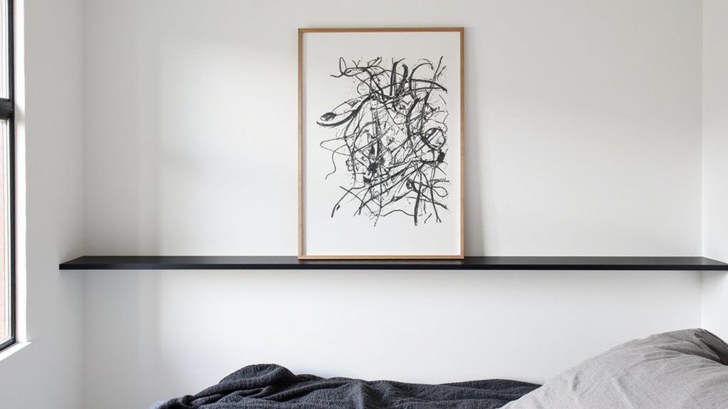 If you’re looking to elevate your minimalist bedroom, consider adding a monochromatic art piece as a focal point. It’s a simple way to add depth without clutter. Choose a piece around 24×36 inches to hang above your bed for balance.