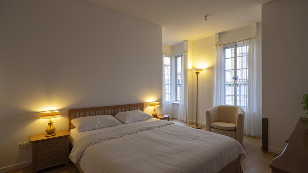 Several easy tweaks can transform your bedroom with soft ambient lighting for a calm, minimalist vibe. You can create a soothing space by avoiding harsh overhead lights and focusing on warm, gentle glows.