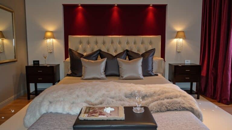 Let’s transform your bedroom into a calm, serene space with minimalist ideas. Start by focusing on simplicity. Clear out clutter and keep only essentials within a 3-foot radius of your bed. “Minimalism reduces stress by limiting visual distractions,” says interior designer Jane Smith. Stick to a tight 2-week timeline to declutter. Curious about the next steps to enhance tranquility? There’s more to explore for a peaceful retreat.