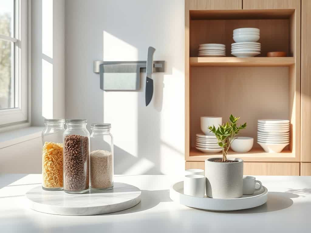 Label everything clearly to ensure items return to their designated spots, and implement a “one-in-one-out” rule when adding new kitchen items to maintain the minimalist organization system.