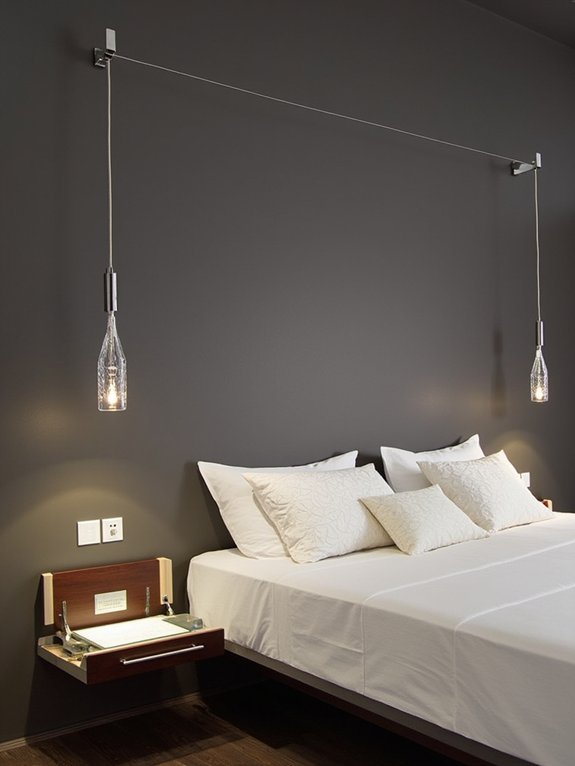 These fixtures offer versatility through different glass options – from clear blown glass for focused task lighting to frosted versions for softer ambiance. Their adjustable cord lengths enable custom positioning, while colored glass adds artistic elements. Modern bedroom designs particularly benefit from these minimalist fixtures that blend aesthetic appeal with practical functionality.