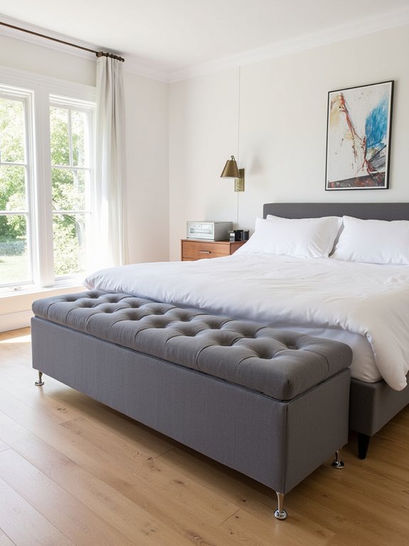 Hidden storage ottomans combine functionality with style, offering both comfortable seating and concealed storage space in modern bedrooms. These versatile pieces provide an elegant solution for storing extra bedding, clothing, and personal items while serving as decorative seating options.