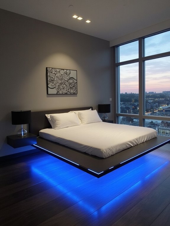 LED strip lighting installed under the bed frame offers a modern alternative to traditional bedroom lighting solutions. By creating a floating effect and soft ambient glow, these lights transform the bedroom atmosphere while providing practical illumination for nighttime navigation.