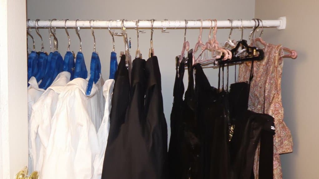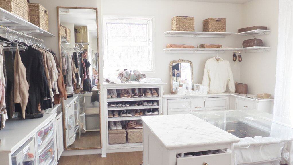 Hey, let’s chat about transforming your closet into a stylish, functional space! I’ve battled messy closets myself—trust me, digging through piles is no fun. Imagine a setup where everything’s easy to find, and it looks amazing too. With a color-coded hanging system, you’ll save time and add flair. Curious how a few tweaks, like vertical racks, can change everything? Stick around for some game-changing tips!