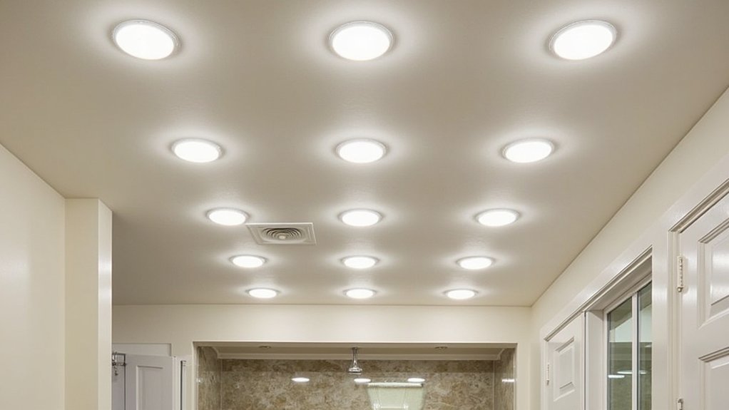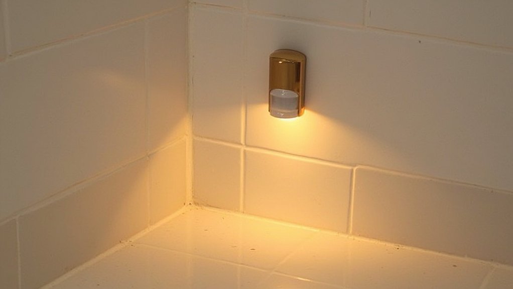 If you’re looking for a smart way to light up your bathroom at night, consider motion-sensor night lights. They activate automatically, illuminating your space only when needed, saving energy. Install them near the floor, about 6 inches up, for a soft 5-10 lumen glow that won’t blind you.
