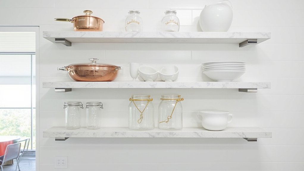 Three stunning marble accent shelves can instantly elevate your kitchen’s style with a touch of luxury. You’ll love how these 36-inch-long, 10-inch-deep shelves add elegance while holding your essentials. Install them in 30 minutes with basic tools, ensuring a sleek, modern vibe.