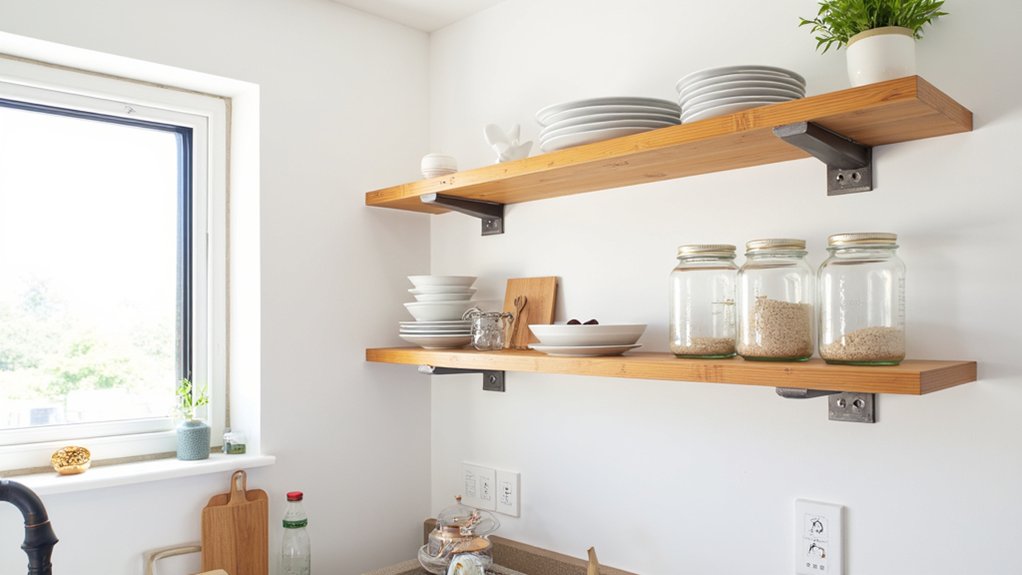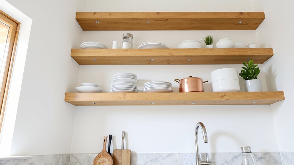 Hey, let’s upgrade your kitchen with open shelving that’s both stylish and handy! You can transform your space into a functional hub by choosing the right shelves. Start with these ideas to blend design and utility. As expert designer Jane Smith says, “Open shelves, like 36-inch floating wooden ones, installed 18 inches above counters, maximize space within 2 hours.” Curious about more options? Stick around for inspiring tips!