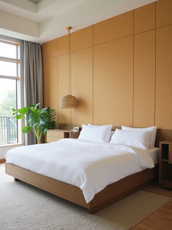 Cork panels offer an elegant solution for accent walls, combining natural beauty with practical benefits. The textural warmth of cork enhances organic modern design while providing acoustic insulation and eco-friendly appeal.