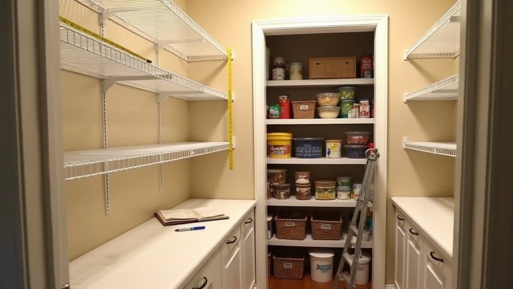 Ever feel like your pantry is a chaotic Narnia, hiding surprises behind every door? Hey, I’ve been there, digging for pasta while cans avalanche! Let’s tame that beast together. Start by measuring your shelves—mine are 12 inches deep—and empty everything out. Trust me, seeing it all is a game-changer. There’s more to this organizing magic, so stick around for the next step to transform your space!