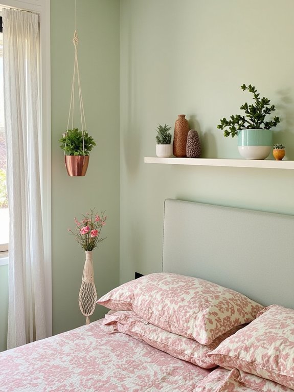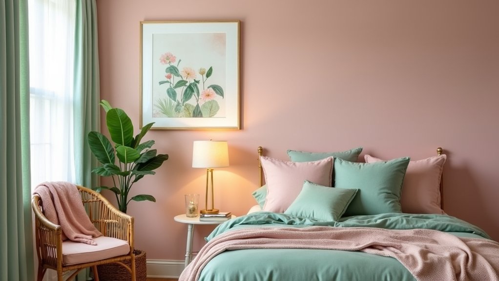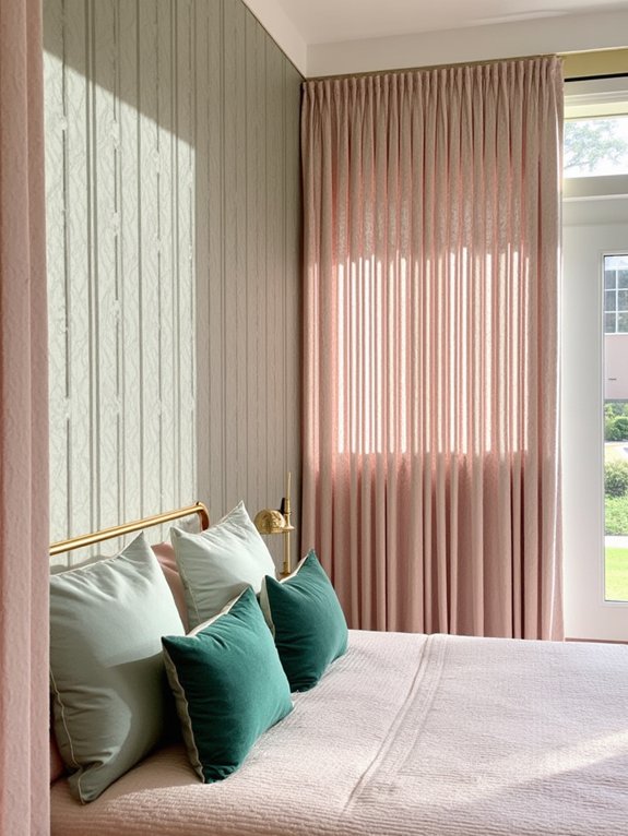 Alternating panels of green and pink velvet transform bedroom walls into luxurious focal points that capture both sophistication and warmth. The velvet textures create depth through their light-catching properties, while careful panel arrangements guarantee visual balance throughout the space.