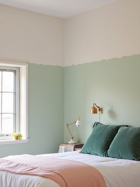 Creating a green paint mist effect transforms bedroom walls with an ethereal, cloud-like appearance. The technique involves applying multiple thin layers of diluted sage or mint paint over a white base coat to achieve a soft, dreamy quality.