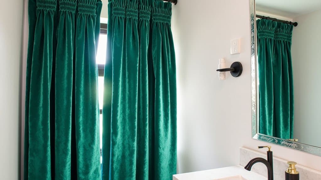 While upgrading your powder room, think about installing bold velvet curtains to add a touch of luxury. They’re an affordable way to elevate the space with rich texture. Choose deep hues like emerald or navy in a standard 84-inch length to frame a small window or wall.