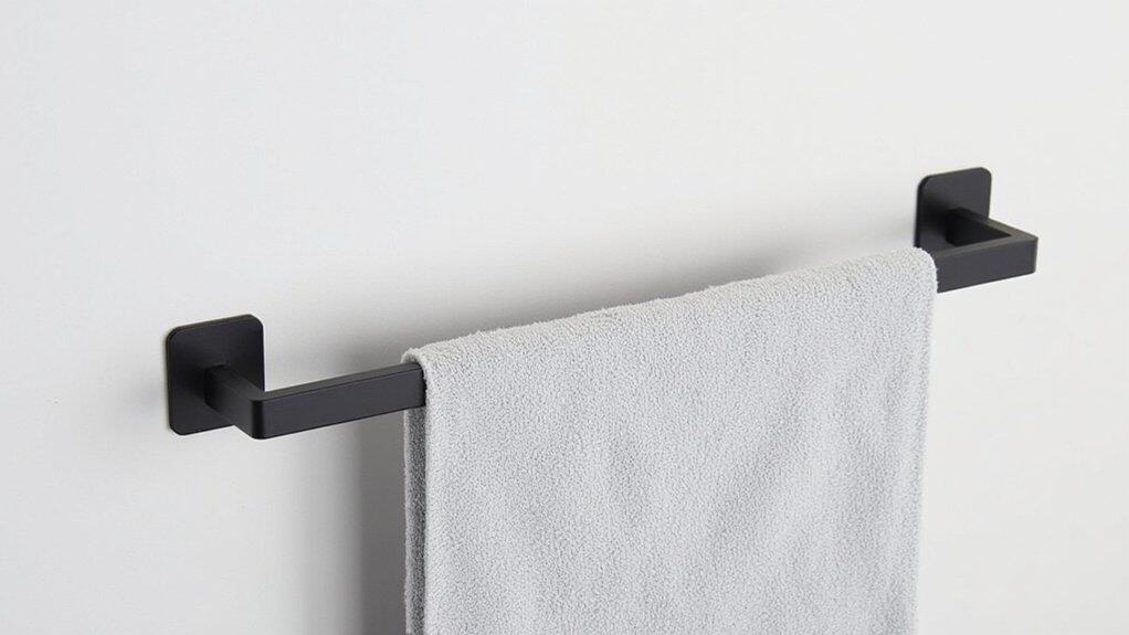 Consider adding a sleek black towel rack to give your powder room a bold, modern edge. It’s an affordable way to elevate your space with minimal effort. Choose a rack around 24 inches wide to fit most small bathrooms, and install it within 48 hours using basic tools.