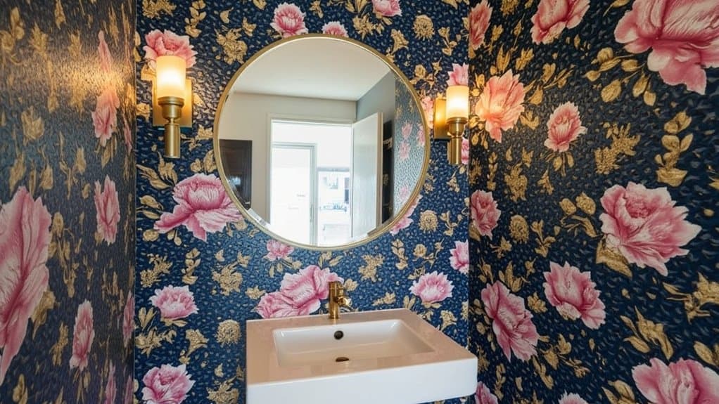 A well-chosen wallpaper can transform your powder room into a stylish haven in just a weekend. You’ve got this! Pick a bold pattern or subtle texture for a 5×7-foot space, ensuring it’s peel-and-stick for easy application. Plan to spend 4-6 hours on a Saturday.
