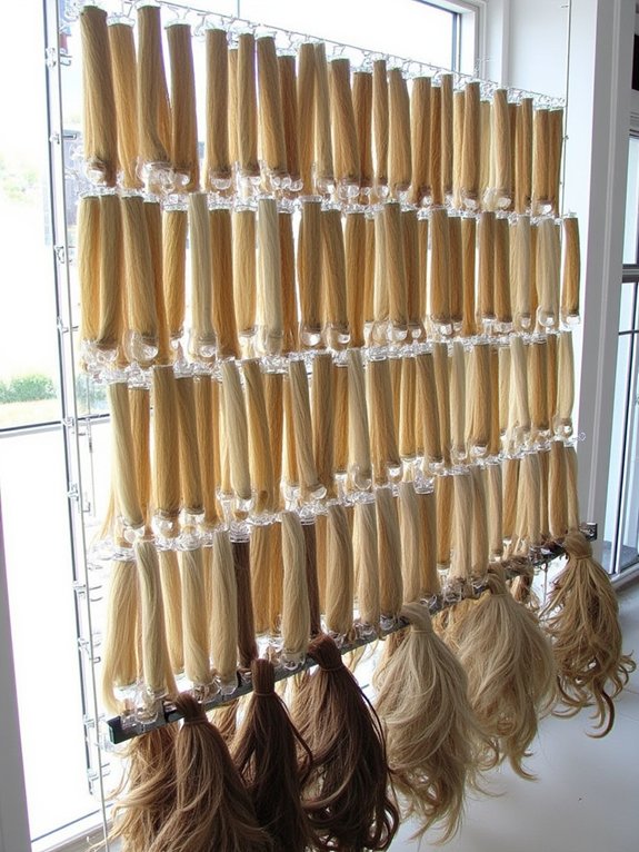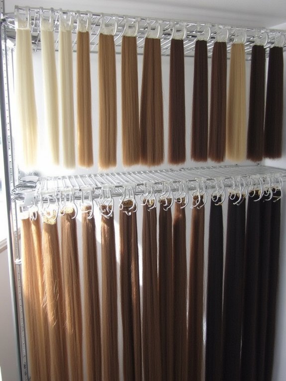 The system’s versatility comes from its adjustable wire racks, secure clips, and open-air construction. Multiple hanging positions enable organization by color or style, while the ventilated design helps maintain extension quality. The height-adjustable racks accommodate various extension lengths, ensuring proper storage for all types.