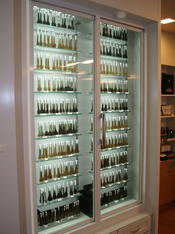 The salon-style extension cabinet system provides professional-grade storage designed specifically for hair extensions. With clear acrylic doors and adjustable shelving, it keeps extensions visible, organized, and protected from dust while maintaining optimal conditions through built-in ventilation.