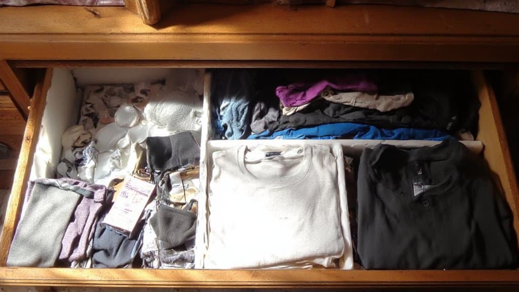 Once you’ve decluttered, evaluate the “keep” pile to verify each piece aligns with your current style and needs. If something is sentimental but unworn, consider storing it elsewhere, like a memory box, rather than taking up valuable drawer space. This purging process sets the foundation for a streamlined drawer organization system, making it easier to find and access what you actually wear.