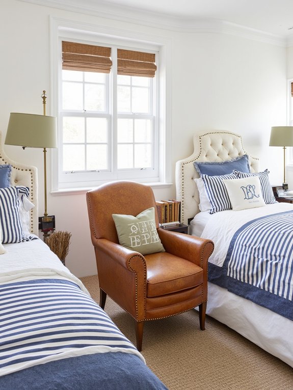 Traditional elements like crisp stripes, monograms, and classic patterns merge seamlessly with modern touches to craft a timeless yet fresh environment.