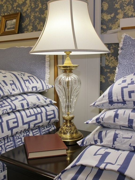 An etched glass table lamp combines functionality with sophisticated style, featuring delicate patterns carved into its glass surface. When lit, these intricate designs cast enchanting shadows that create visual depth and interest in any room, making it an ideal accent piece for preppy bedroom decor.