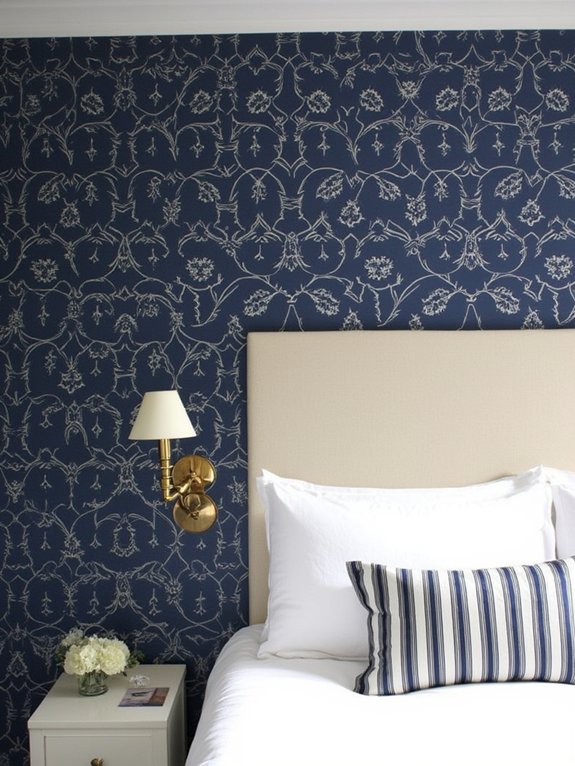 A monogram accent wall stencil transforms a bedroom into a personalized space by featuring an oversized initial design, typically spanning 3-4 feet in diameter. This bold statement piece follows current design trends while maintaining classic sophistication.