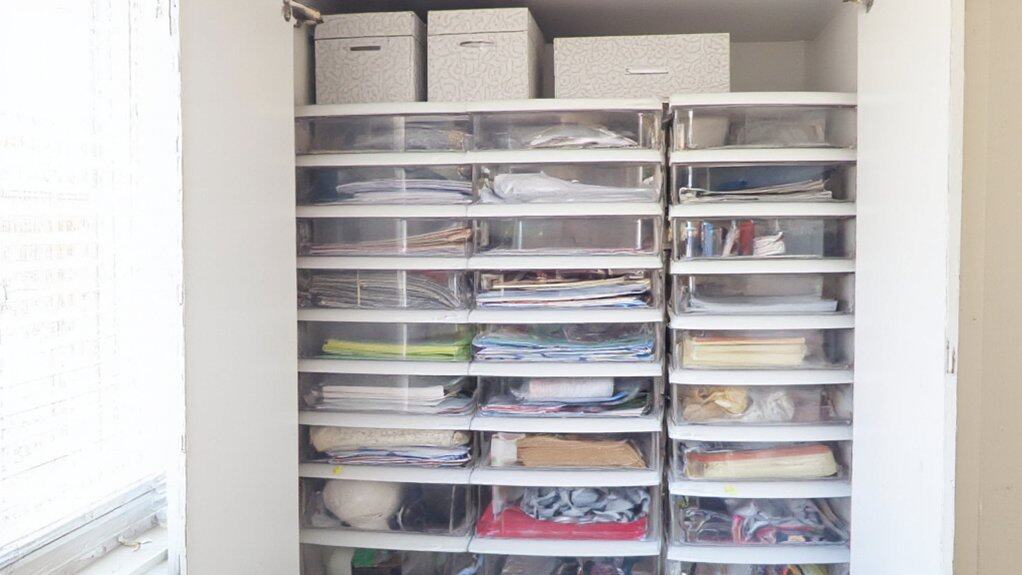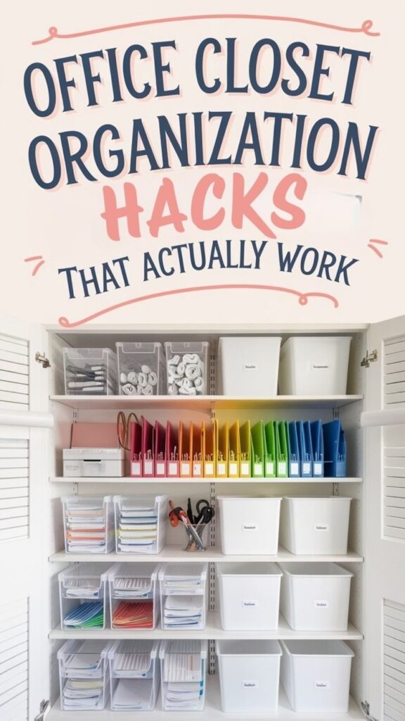 Did you know that 80% of office workers waste time hunting for misplaced items? Hey, I’m right there with ya, digging through a messy closet for that one elusive file! Let’s turn that chaos into order with some pro hacks. Start by maximizing vertical space—think shelves up to 6 feet high. Trust me, I’ve transformed my own cramped nook this way. Curious how? Stick around for game-changing tips!
