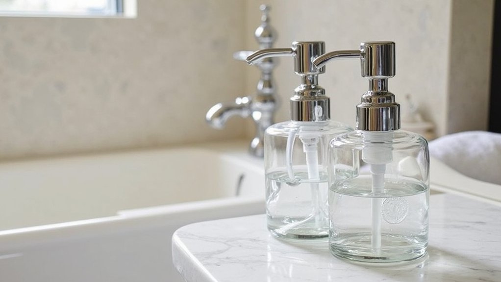 - Glass Dispenser – Opt for a clear 10-ounce bottle, refillable, with a chrome pump.
