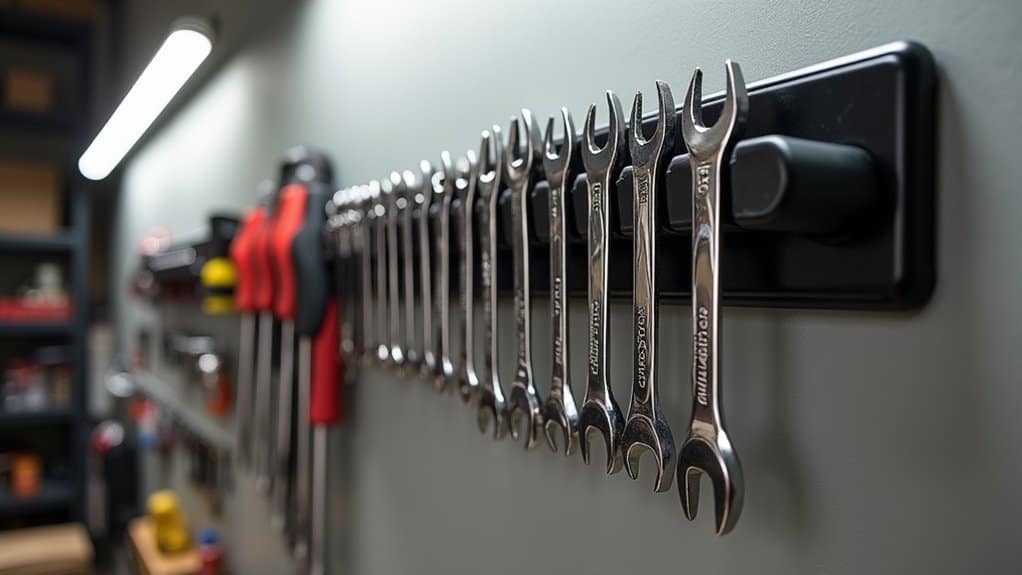 To maximize their efficiency, group similar tools together on the magnetic holder for quick identification and access. Verify the strip is placed at a convenient height to avoid strain while reaching for tools. Regularly clean the magnetic surface to prevent dust buildup, which can weaken the hold over time.