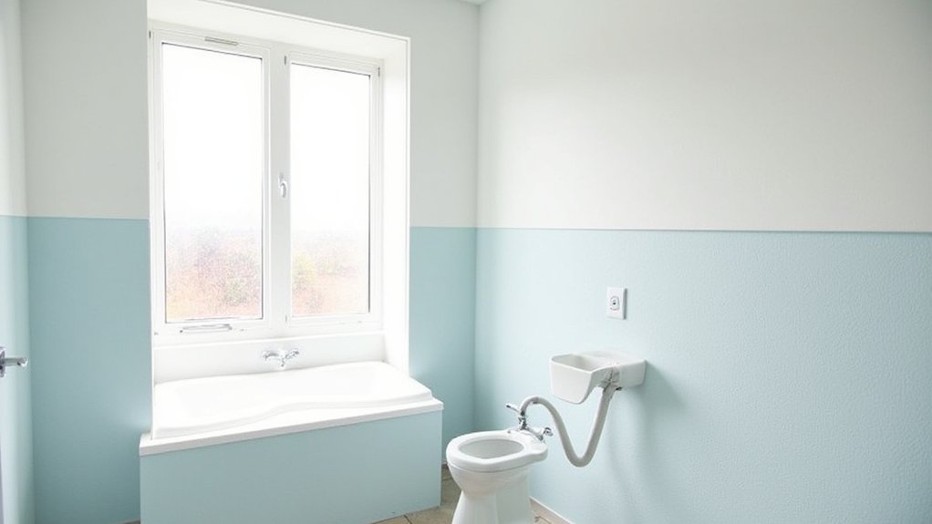 Serenity starts with color, and a serene blue wall can transform your bathroom into a calming retreat. You’ll feel a subtle peace wash over you when you choose the right shade. Pick a soft blue, like a pastel or muted teal, for a 10×10-foot bathroom to keep it relaxing. Paint during a weekend, taking about 4-6 hours.