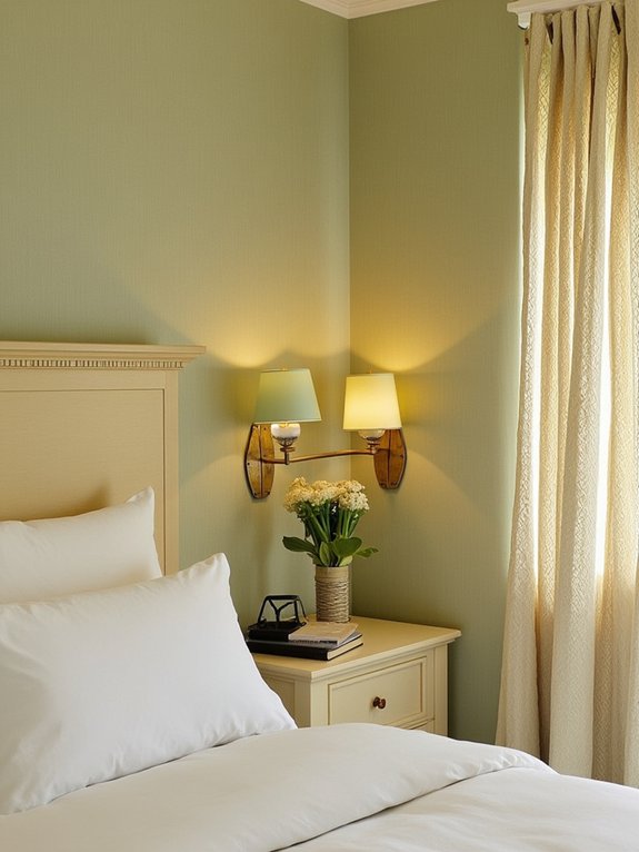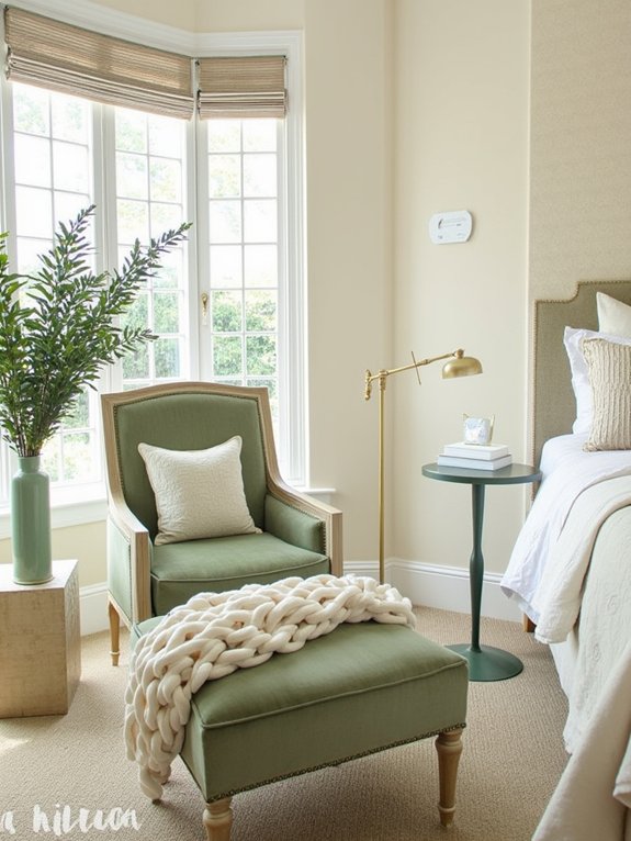 Sage green and cream combine to create one of the most soothing and sophisticated color palettes for bedroom design.