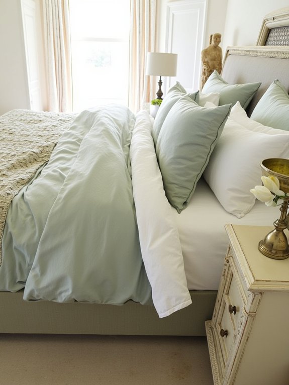 The earthy sage provides a subtle pop of color while cream adds warmth and light, working together to transform any bedroom into a serene retreat that feels both fresh and classic.