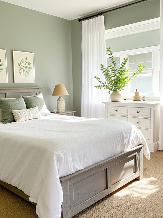 Whether you’re drawn to vintage-inspired fixtures, natural textures, or handcrafted wooden accents, sage green provides the perfect foundation for a farmhouse bedroom retreat.