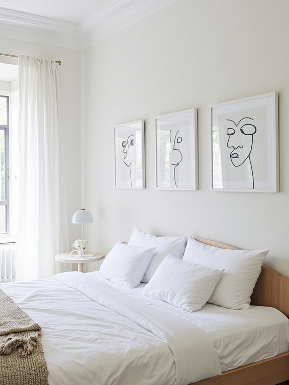 The prints work best when framed in slim black or natural wood frames and positioned at eye level. Sizes typically range from 16×20 to 24×36 inches, allowing them to properly fill wall space while complementing modern Nordic bedroom decor without overwhelming the environment.