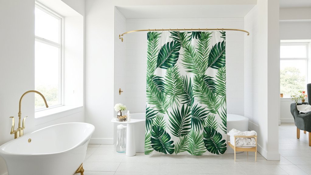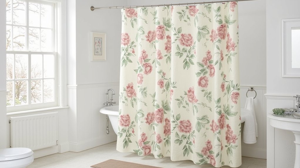 Elegance awaits as you transform your guest bathroom with a vintage floral pattern shower curtain. You’re choosing a timeless style that adds charm with soft roses or peonies in muted pinks and greens. Select a curtain measuring 72×72 inches to fit standard tubs, ensuring full coverage.