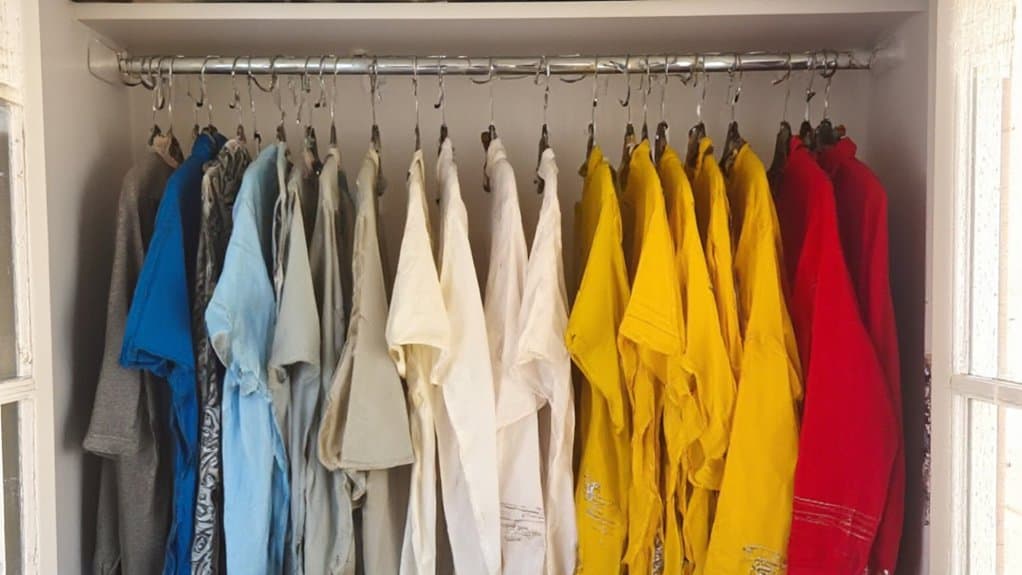 Ever thought a chaotic closet could transform into a calming haven? Hey, I’m thrilled to share some simple color organization tips to streamline your wardrobe! Back when my closet was a mess, I’d spend forever finding a shirt—ugh, frustrating! Let’s start with grouping by hue. Hang your reds together, blues next, like a rainbow across your rack. Trust me, it’s a game-changer. Want more? Stick around for the full scoop!