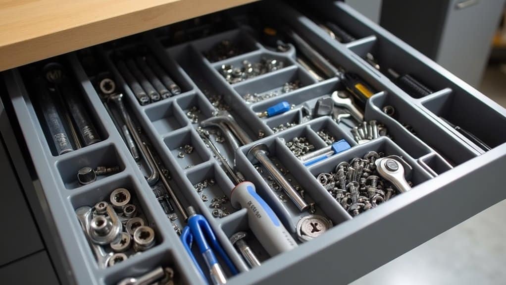 Once installed, categorize your items and place them into the designated compartments to maintain order and easy access. Regularly reassess the layout as your storage needs change, adjusting the dividers to fit new tools or supplies. This flexibility assures that your garage drawers remain functional and tidy, saving you time when searching for specific items.