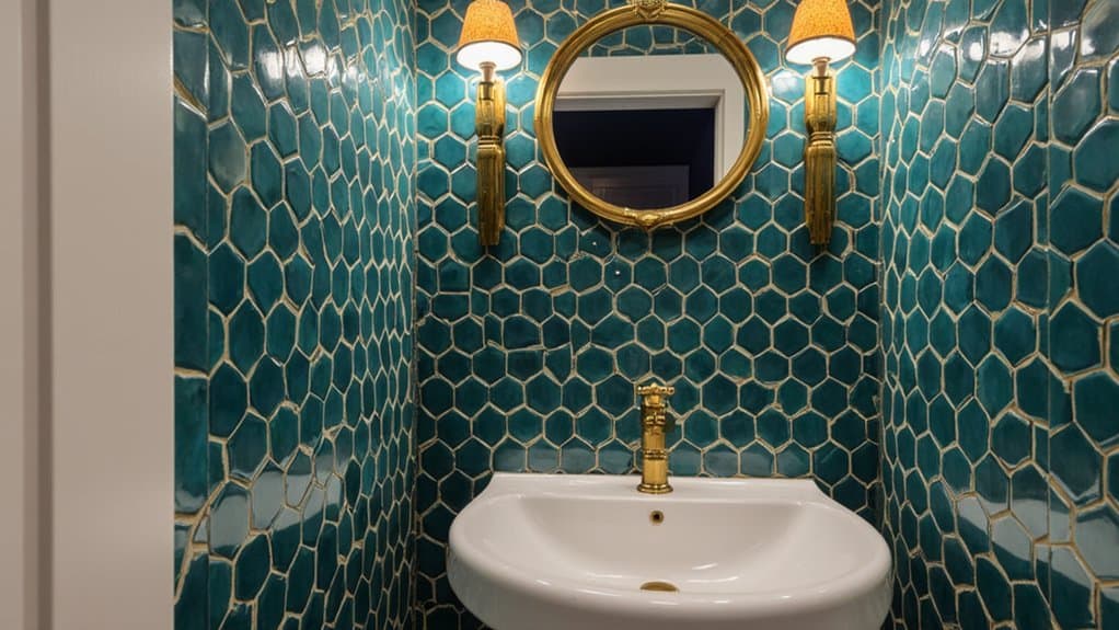 Let’s plunge into elevating your powder room with a bold tile accent that grabs attention. You can transform a small space with vibrant tiles, adding character instantly. Choose a focal point, like a backsplash or floor, and install within a 5×5 foot area for impact. “Bold tiles define a room’s energy,” says interior designer Jane Holt.