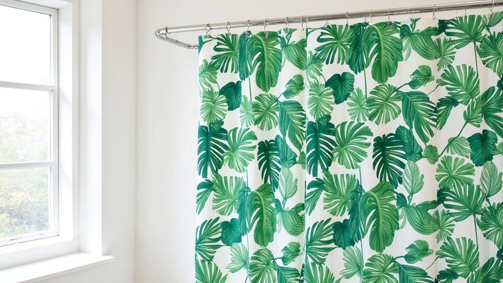 If you’re looking to inject some character into your powder room, try adding a playful shower curtain as your next update. It’s an easy swap that takes just 10 minutes and can transform the space with bold patterns or quirky designs.