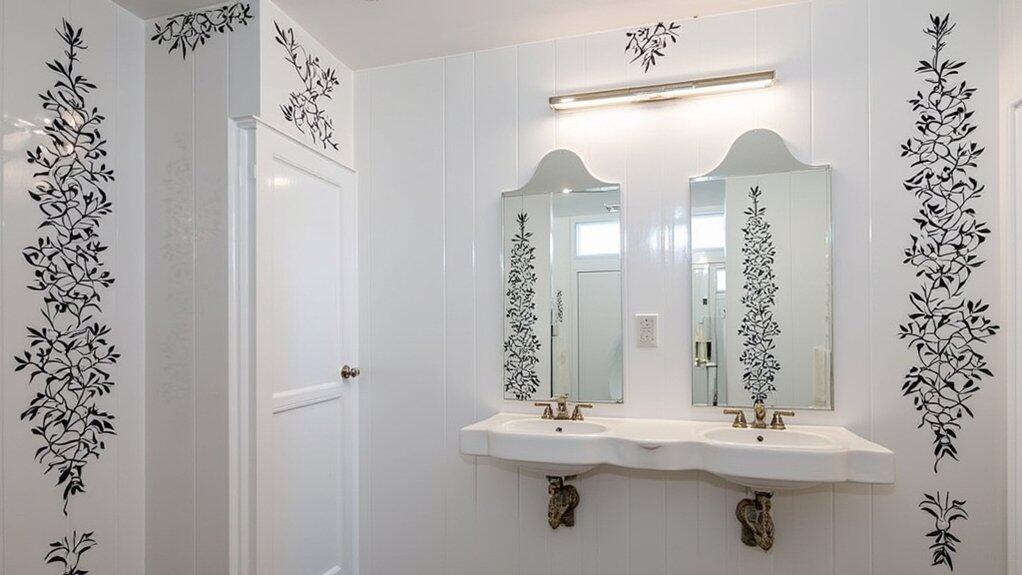 Bring a fresh layer of style to your powder room by shifting focus from bold tiles to artistic wall decals. These easy-to-apply stickers can transform your space in under an hour. Pick designs that match your vibe, like floral patterns or geometric shapes, for a 24-inch by 36-inch wall area.