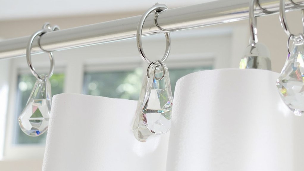 Anyone can transform a plain bathroom into a fancy retreat with crystal shower curtain rings. These small additions bring a touch of elegance without much effort. You’ll notice the sparkle instantly as they catch the light, making your shower area look upscale.