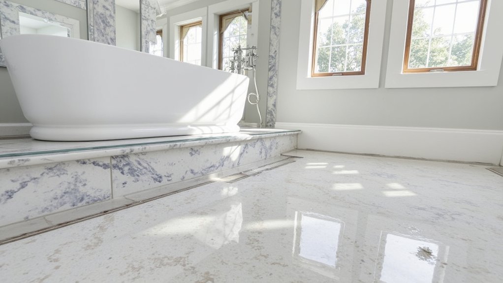 Imagine stepping onto a warm, luxurious surface every morning with heated marble flooring in your bathroom. You’ll transform a cold space into pure comfort with this upgrade. It’s not just fancy; it’s practical too. “Heated floors add value and daily ease,” says home designer Lisa Carter.
