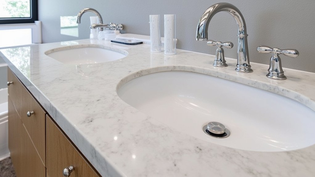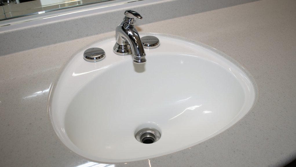 While updating your guest bathroom, consider the sleek undermount sink for a modern, seamless look that’s easy to maintain. You’ll love how it fits under the countertop, creating a clean surface without edges to trap dirt. Installation takes about 2-3 hours, and you’ll need a countertop with a cutout of roughly 22×16 inches.